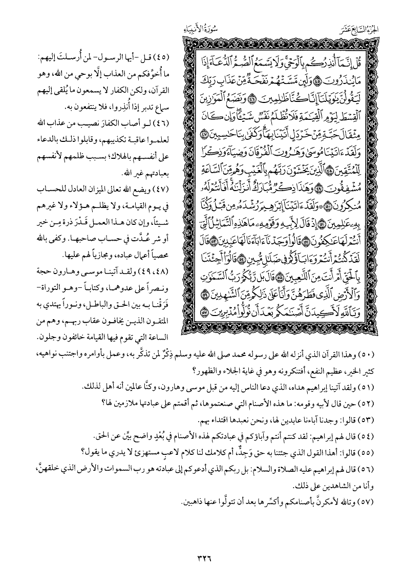 ولقد آتينا موسى وهارون حجة ونصرًا على عدوهما، وكتابًا - وهو التوراة - فَرَقْنا به بين الحق والباطل، ونورًا يهتدي به المتقون الذين يخافون عقاب ربهم، وهم من الساعة التي تقوم فيها القيامة خائفون وجلون.