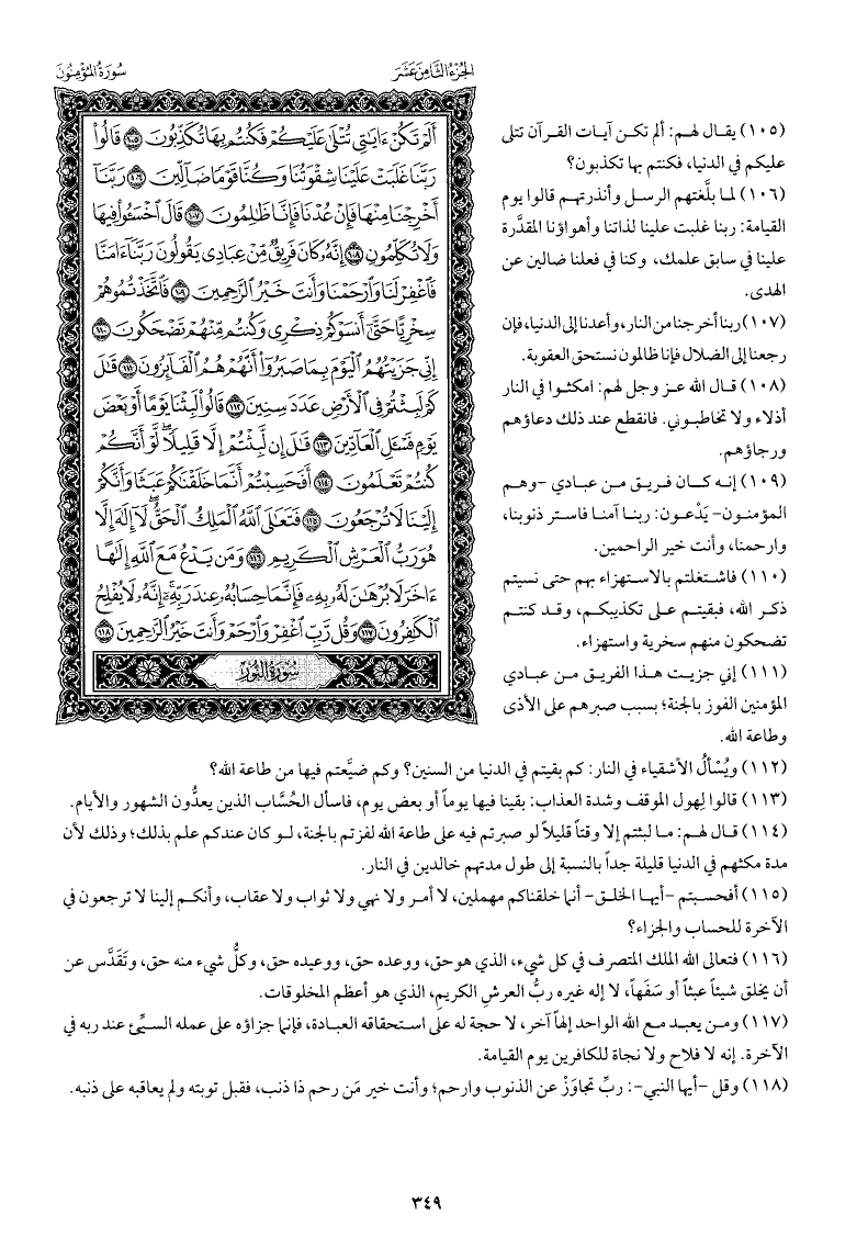 ويُسْألُ الأشقياء في النار: كم بقيتم في الدنيا من السنين؟ وكم ضيَّعتم فيها من طاعة الله؟