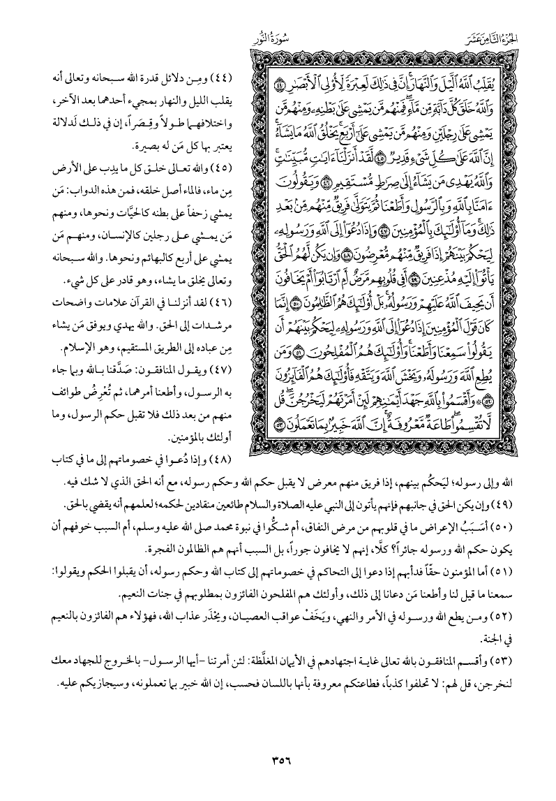 ويقول المنافقون: صَدَّقنا بالله وبما جاء به الرسول، وأطعنا أمرهما، ثم تُعْرِضُ طوائف منهم من بعد ذلك فلا تقبل حكم الرسول، وما أولئك بالمؤمنين.