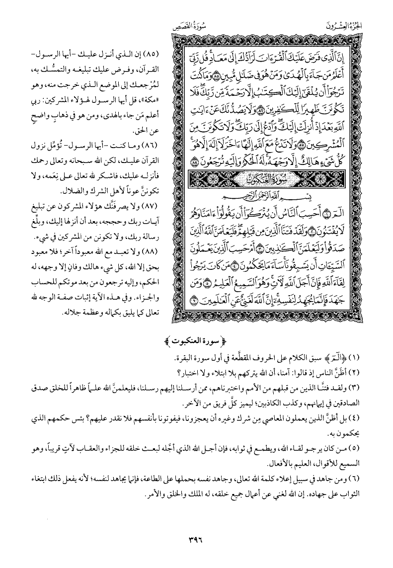 إن الذي أنزل عليك -أيها الرسول- القرآن، وفرض عليك تبليغه والتمسُّك به، لمرجعك إلى الموضع الذي خرجت منه، وهو «مكة» ، قل -أيها الرسول- لهؤلاء المشركين: ربي أعلم مَن جاء بالهدى، ومن هو في ذهابٍ واضحٍ عن الحق.