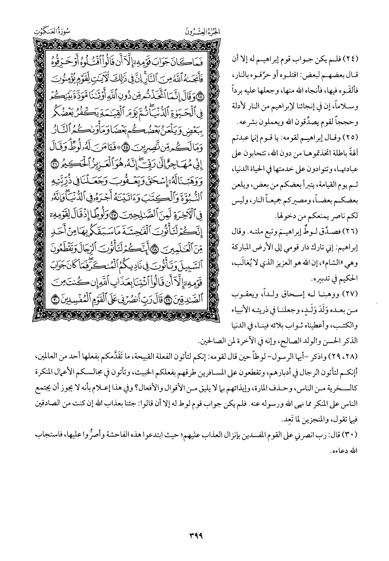 فصدَّق لوطٌ إبراهيمَ وتبع ملته. وقال إبراهيم: إني تارك دار قومي إلى الأرض المباركة وهي «الشام» ، إن الله هو العزيز الذي لا يُغَالَب، الحكيم في تدبيره.