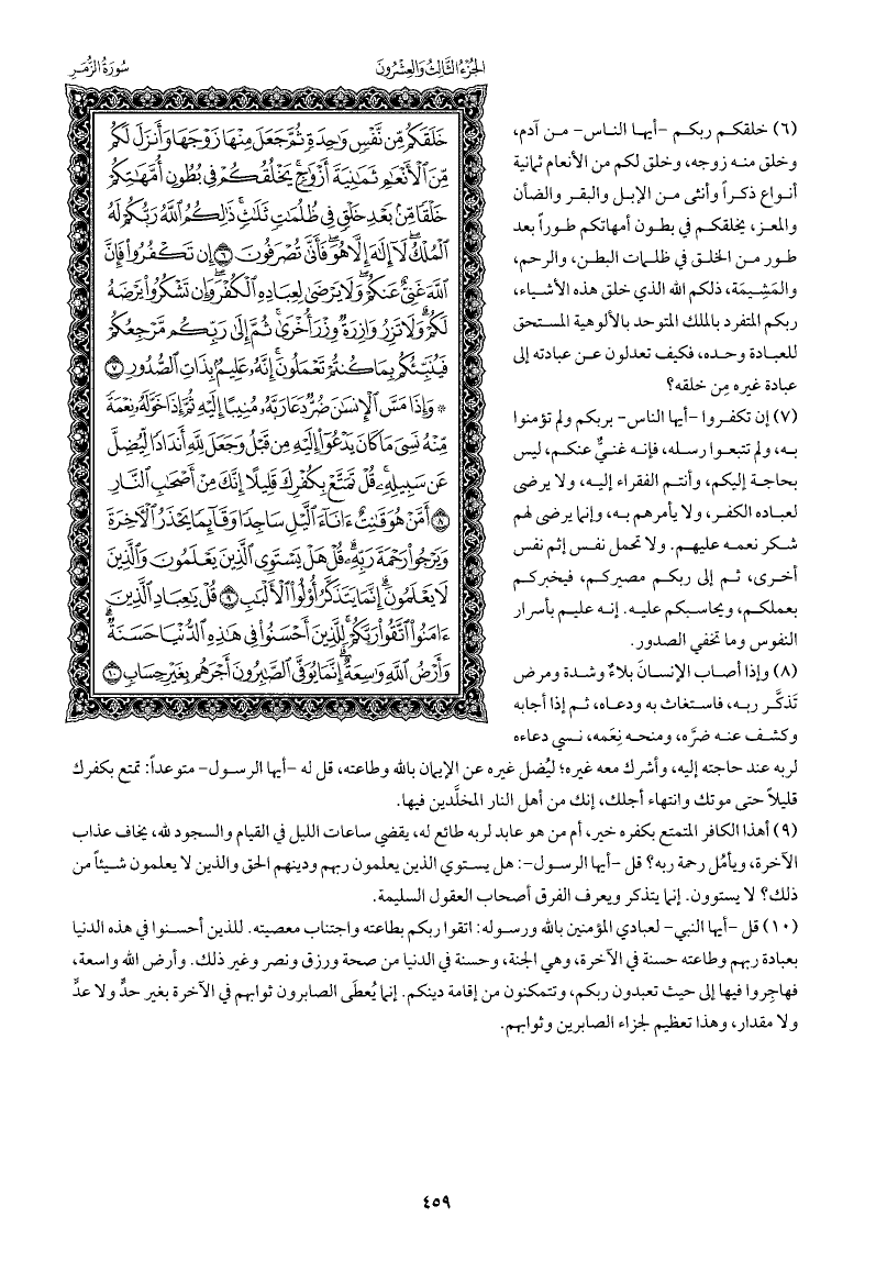 إن تكفروا -أيها الناس- بربكم ولم تؤمنوا به، ولم تتبعوا رسله، فإنه غنيٌّ عنكم، ليس بحاجة إليكم، وأنتم الفقراء إليه، ولا يرضى لعباده الكفر، ولا يأمرهم به، وإنما يرضى لهم شكر نعمه عليهم. ولا تحمل نفس إثم نفس أخرى، ثم إلى ربكم مصيركم، فيخبركم بعملكم، ويحاسبكم عليه. إنه عليم بأسرار النفوس وما تخفي الصدور.