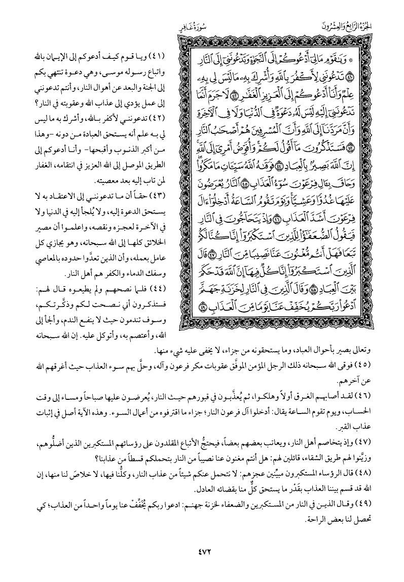 تدعونني لأكفر بالله، وأشرك به ما ليس لي به علم أنه يستحق العبادة من دونه -وهذا من أكبر الذنوب وأقبحها- وأنا أدعوكم إلى الطريق الموصل إلى الله العزيز في انتقامه، الغفار لمن تاب إليه بعد معصيته.
