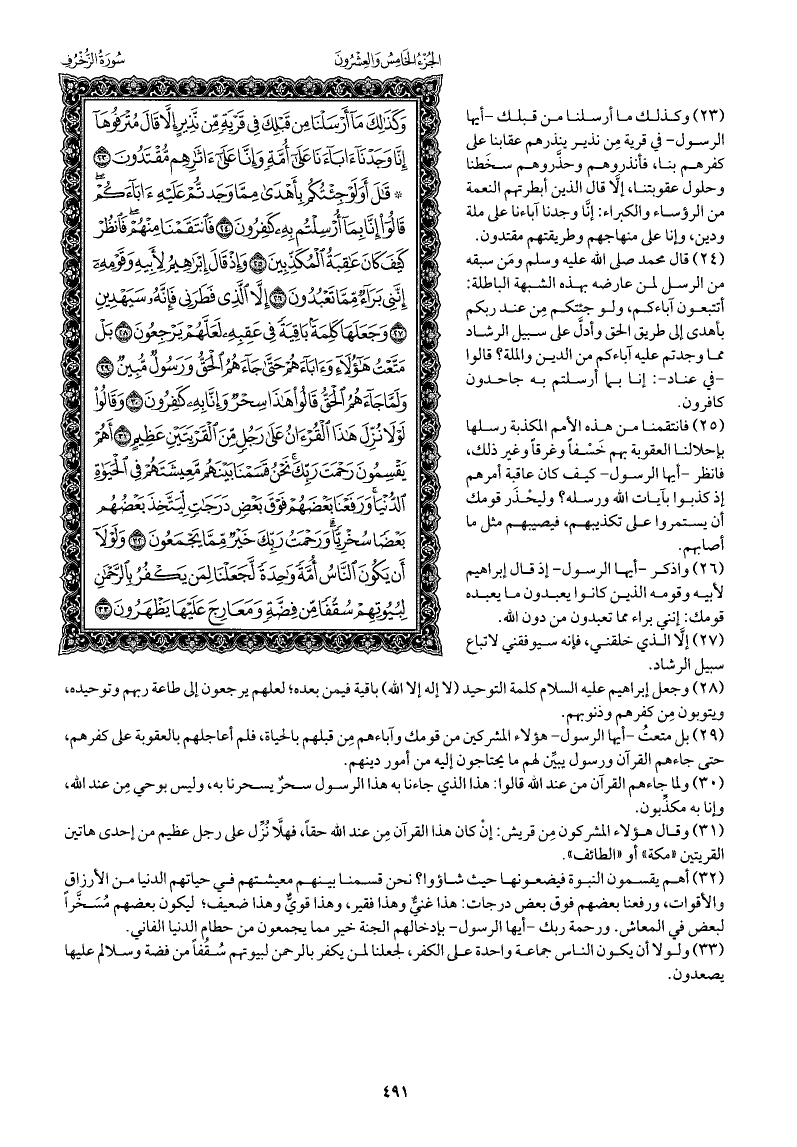 وجعل إبراهيم عليه السلام كلمة التوحيد (لا إله إلا الله) باقية فيمَن بعده؛ لعلهم يرجعون إلى طاعة ربهم وتوحيده، ويتوبون من كفرهم وذنوبهم.