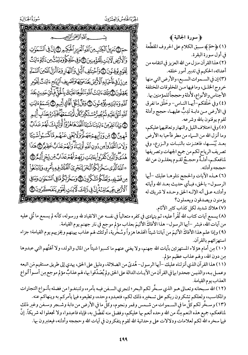الله سبحانه وتعالى هو الذي سخَّر لكم البحر; لتجري السفن فيه بأمره، ولتبتغوا من فضله بأنواع التجارات والمكاسب، ولعلكم تشكرون ربكم على تسخيره ذلك لكم، فتعبدوه وحده، وتطيعوه فيما يأمركم به، وينهاكم عنه.