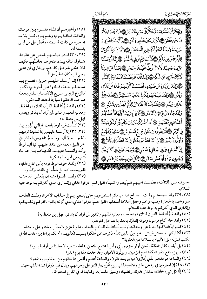 ولقد جاءهم وقت الصباح عذاب دائم استقر فيهم حتى يُفضي بهم إلى عذاب الآخرة، وذلك العذاب هو رجمهم بالحجارة وقلب قُراهم وجعل أعلاها أسفلها، فقيل لهم: ذوقوا عذابي الذي أنزلته بكم؛ لكفركم وتكذيبكم، وإنذاري الذي أنذركم به لوط عليه السلام.