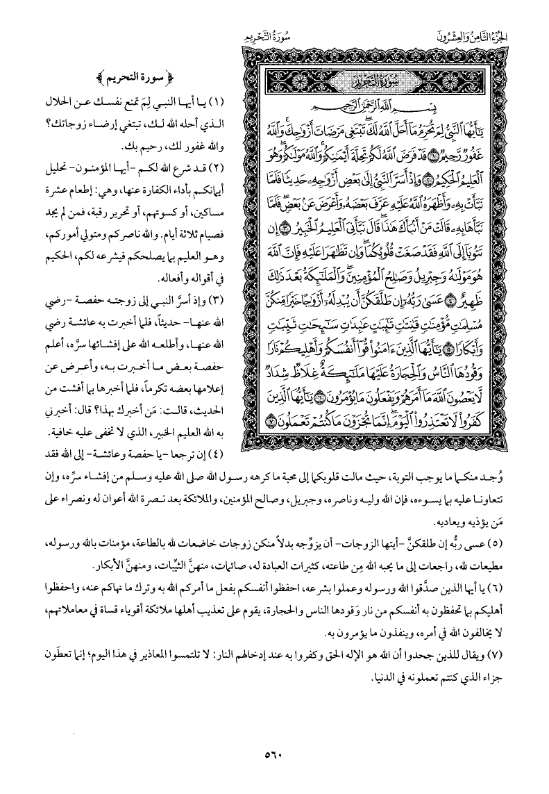 يا أيها النبي لِمَ تمنع نفسك عن الحلال الذي أحله الله لك، تبتغي إرضاء زوجاتك؟ والله غفور لك، رحيم بك.