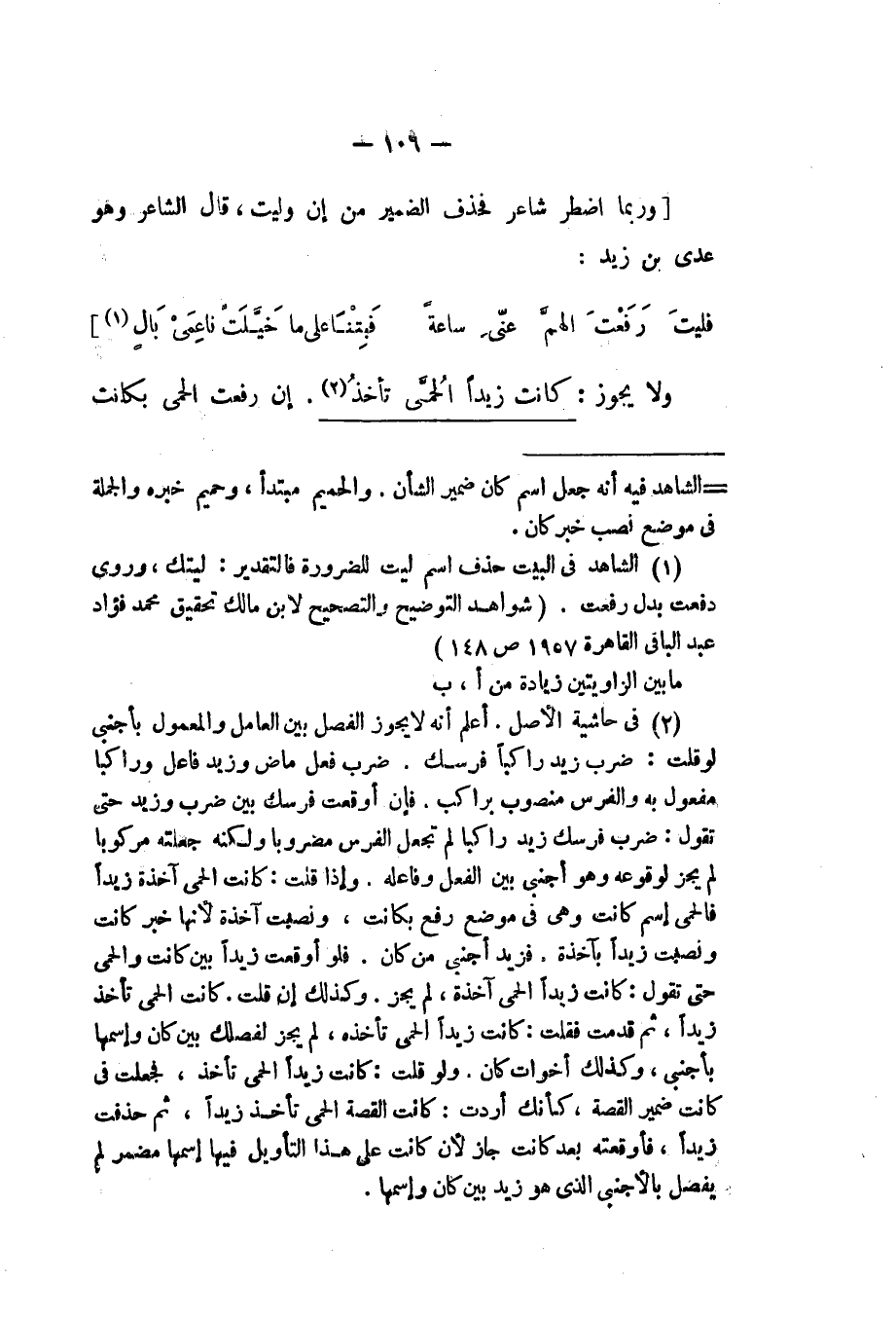 [وربما اضطر شاعر فحذف الضمير من إن وليت، قال الشاعر وهو عدى بن زيد: