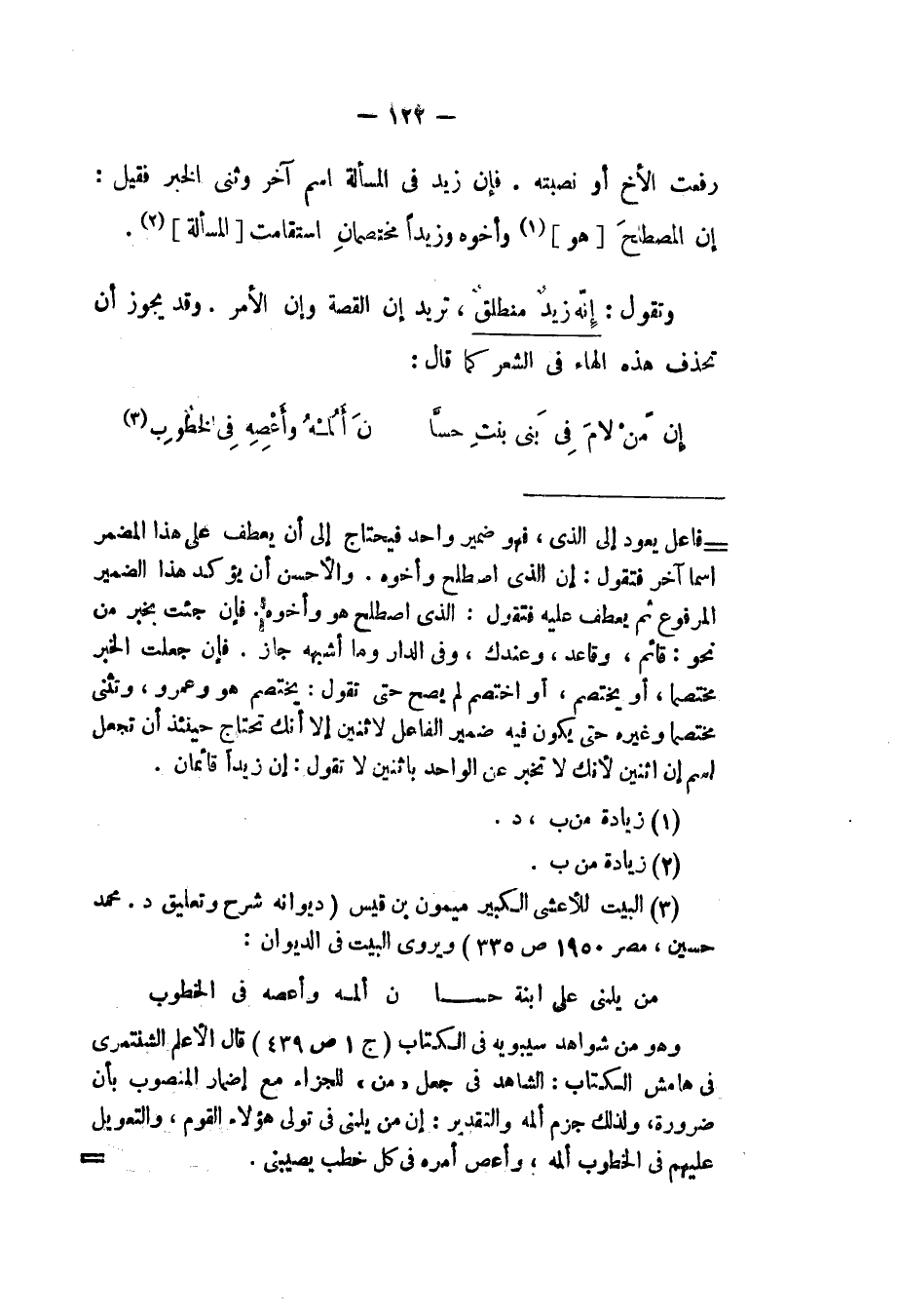 رفعت الأخ أو نصبته. فإن زيد في المسألة اسم آخر وثنى الخبر فقيل: إن المصطلح [هو] وأخوه وزيادا مختصمان استقامت [المسألة].