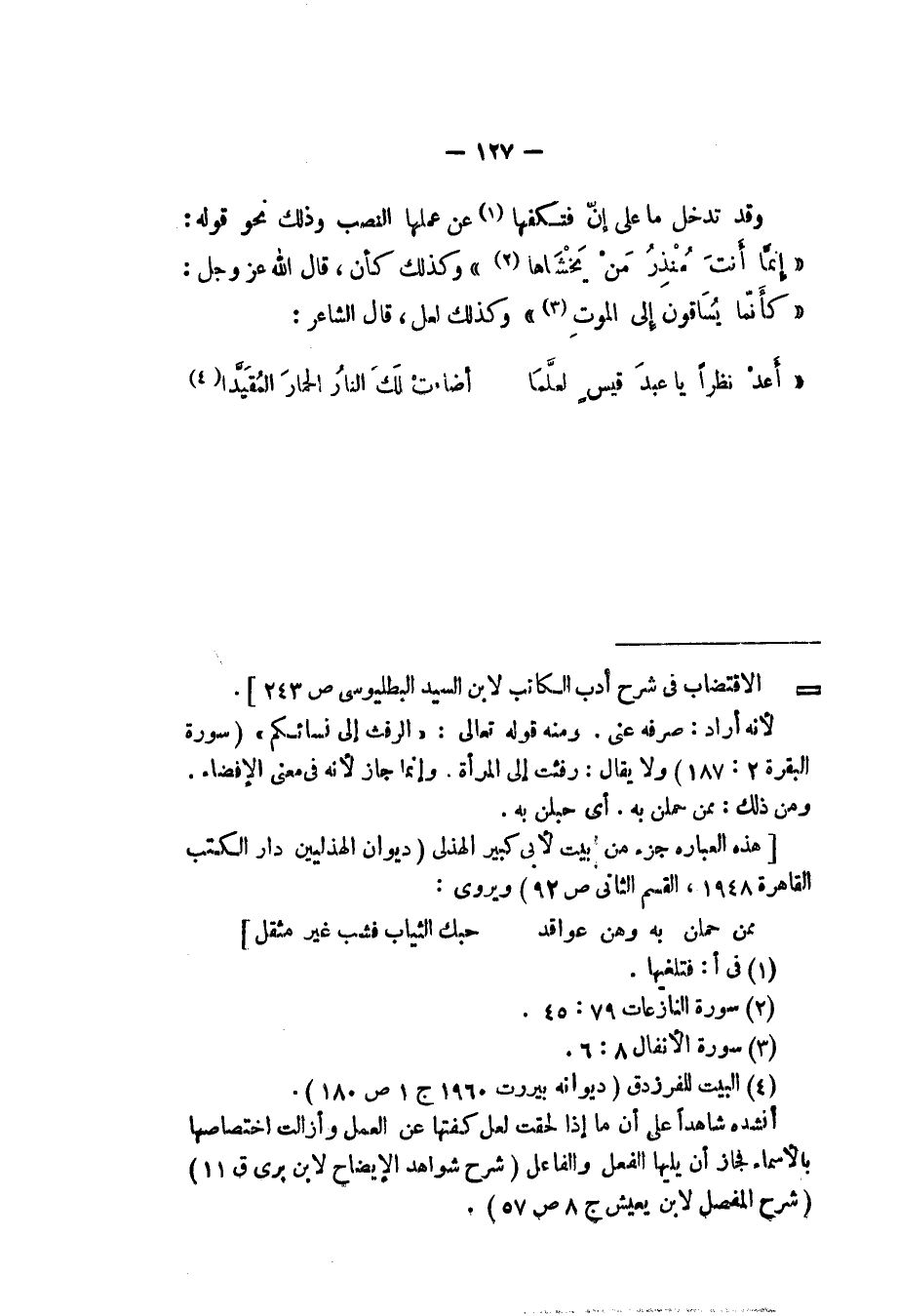 (أعد نظراً يا عبد قيس لعلما ... أضاءت لك النار الحمار المقيدا)