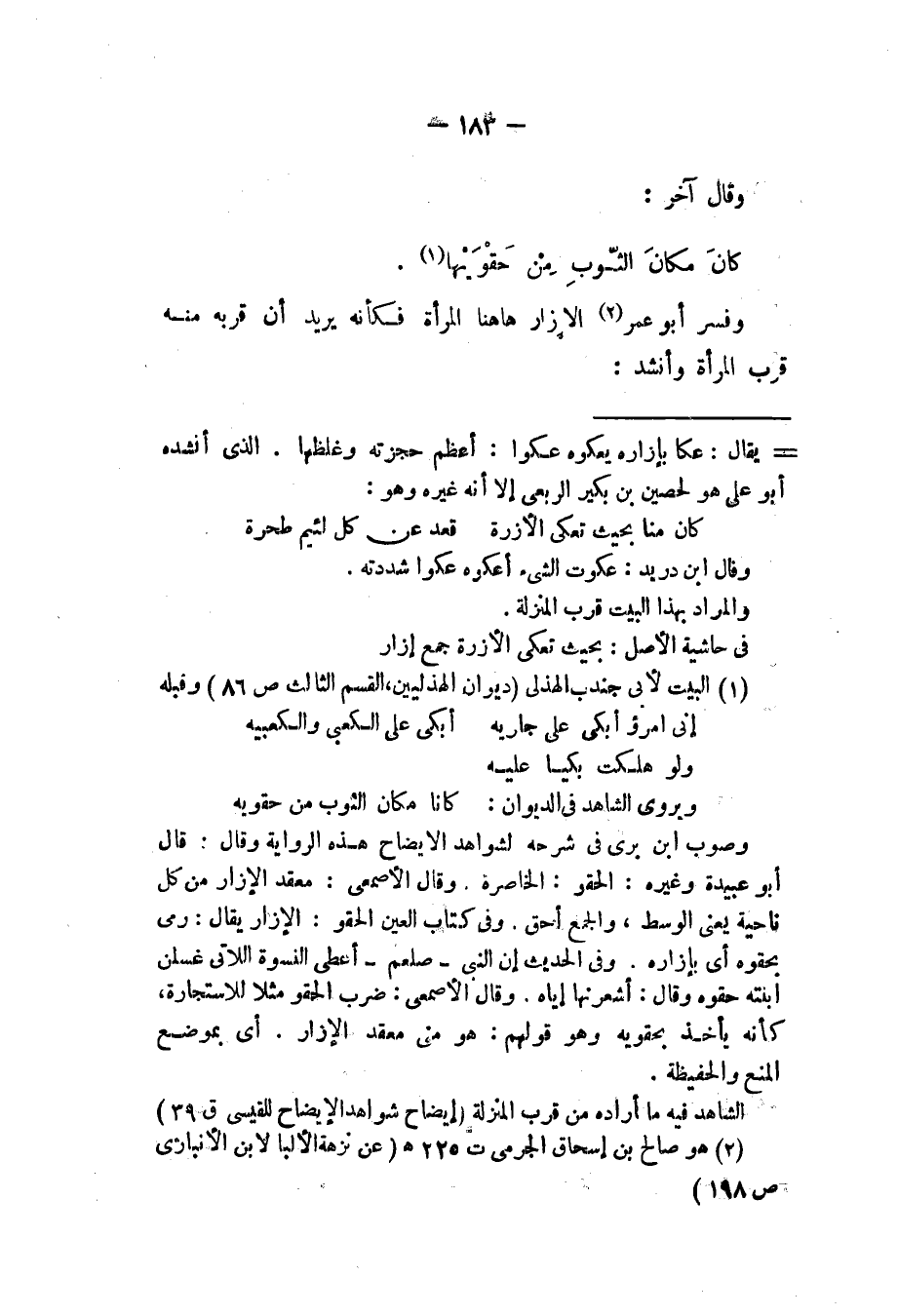 وفسر أبو عمر الأزار هاهنا المرأة فكأنه يريد أن قربه منه قرب المرأة وأنشد: