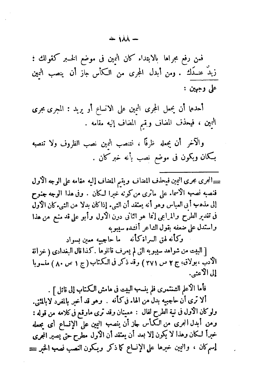 والآخر أن يجعله ظرفا، فتنصب اليمين نصب الظروف ولا تنصبه بكان ويكون في موضع نصب بأنه خبر كان
