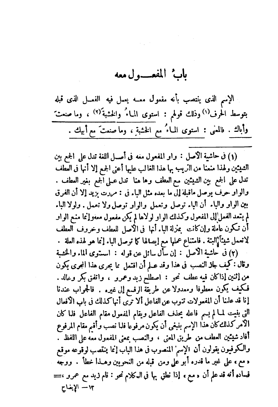 الاسم الذي ينتصب بأنه مفعول معه يعمل فيه الفعل الذي قبله بتوسط الحرف وذلك قولهم: استوى الماء والخشبة وما صنعت وأباك. فالمعنى: استوى الماء مع الخشبة، وما صنعت مع أبيك.