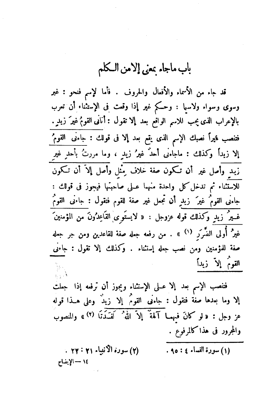 باب ما جاء بمعنى إلا من الكلم