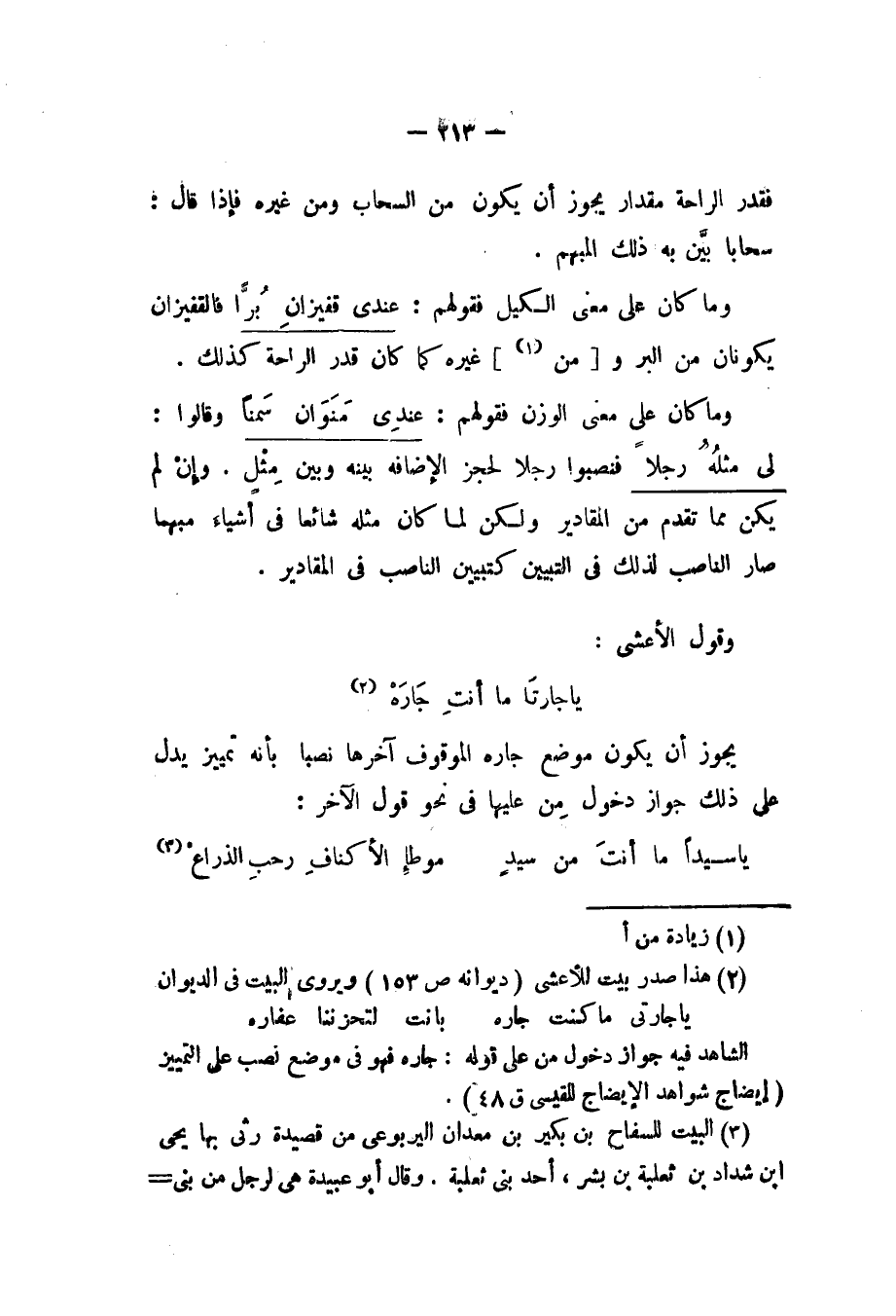 يجوز أن يكون موضع جاره الموقوف آخرها نصبا بأنه تمييز يدل على ذلك جواز دخول من عليها في نحو قول الآخر: