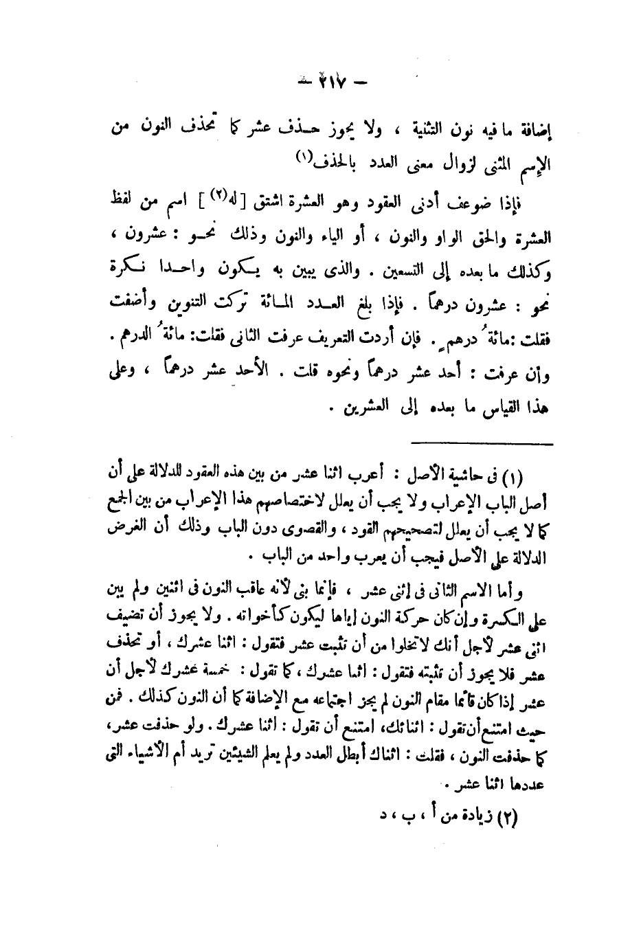 إضافة ما فيه نون التثمية، ولا يجوز حذف عشر كما نحذف النون من الإسم المثنى لزوال معنى العدد بالحذف.