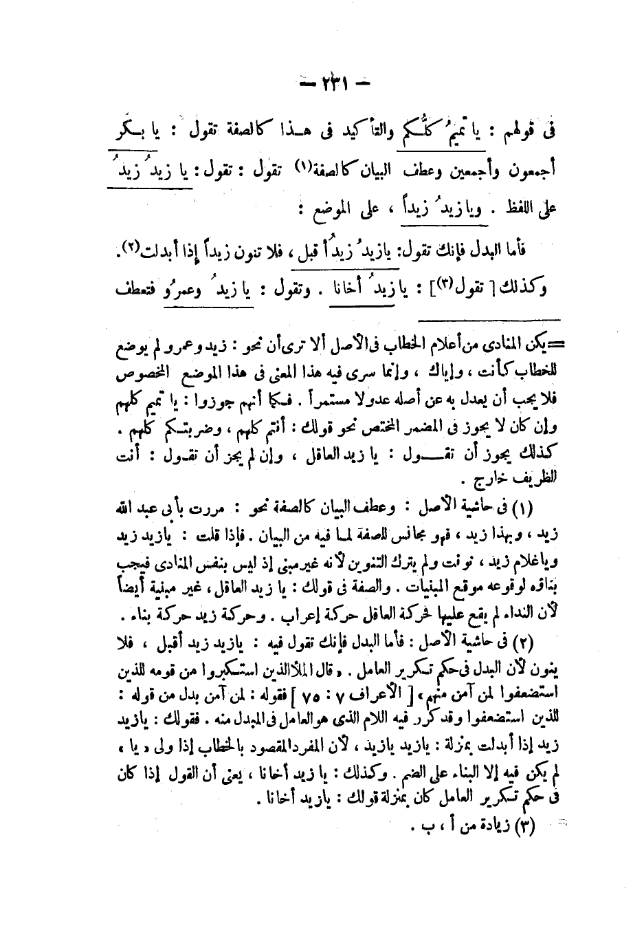 والدليل على جواز وصف المفرد المضموم في النداء وإن كان قد وقع موقع مالا يوصف من حروف الخطاب أنهم كما أجروه مجرى [أسماء] الخطاب فقد أجروه مجرى الأسماء المظهرة الموضوعة للغيبة وذلك في قولهم: يا تميم كلهم، فأضافوه إلى ضمير الغيبة، كما أضافوه إلى ضمير المخاطب