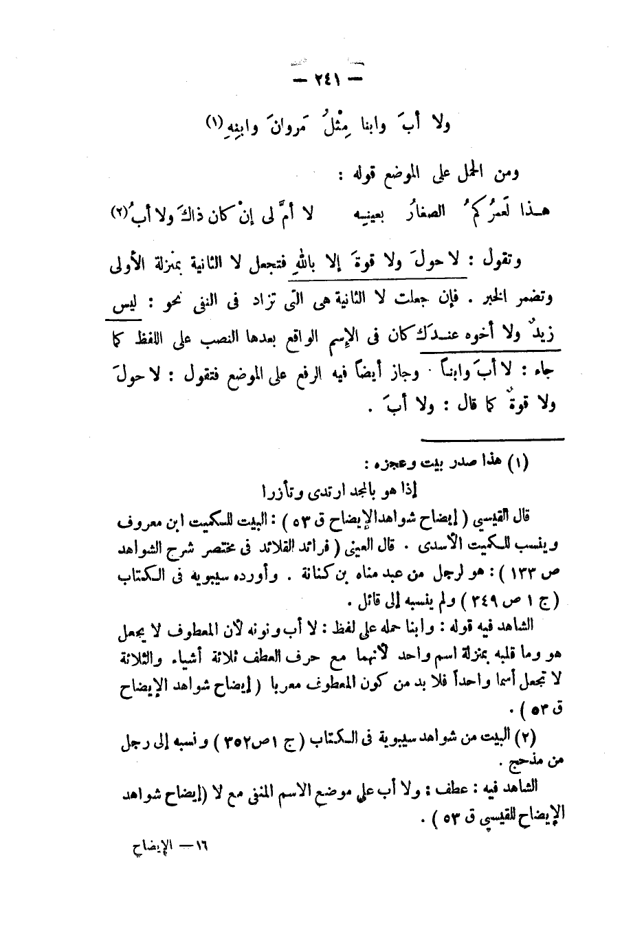 والوجه الثالث أن تجرى الصفة على الموصوف على موضعه فتقول: لا رجل ظريف عندك. لأن موضع لا مع رجل رفع بأنه موضع ابتداء فتجريه على الموضع وإن شئت حذفت الخبر وقول الشاعر: