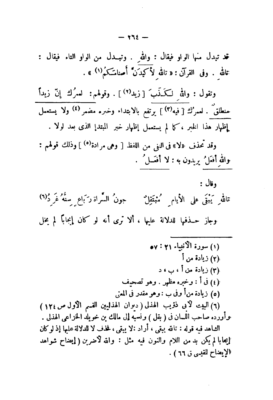 وقد تحذف (لا) في النفي من اللفظ [وهي مراده] وذلك قولهم: والله أفعل يريدون به: لا أفعل.