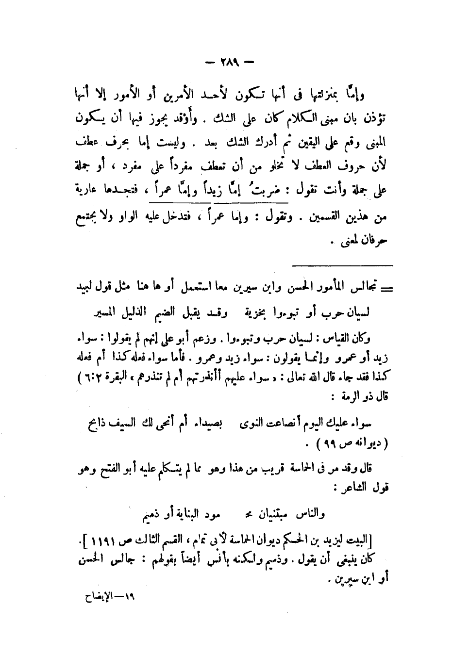 وإما بمنزلتها في أنها تكون لأحد الأمرين أو الأمور إلا أنها تؤذن بان مبنى الكلام كان على الشك. وأوقد يجوز فيها أن يكون المبنى وقع على اليقين ثم أدرك الشك بعد. وليست إما بحرف عطف لأن حروف العطف لا تخلو من أن تعطف مفرداً على مفرد، أو جملة على جملة وأنت تقول: ضربت إما زيداً وإما عمراً، فتجدها عارية من هذين القسمين. وتقول: وإما عمراً، فتدخل عليه الواو ولا يجتمع حرفان لمعنى.