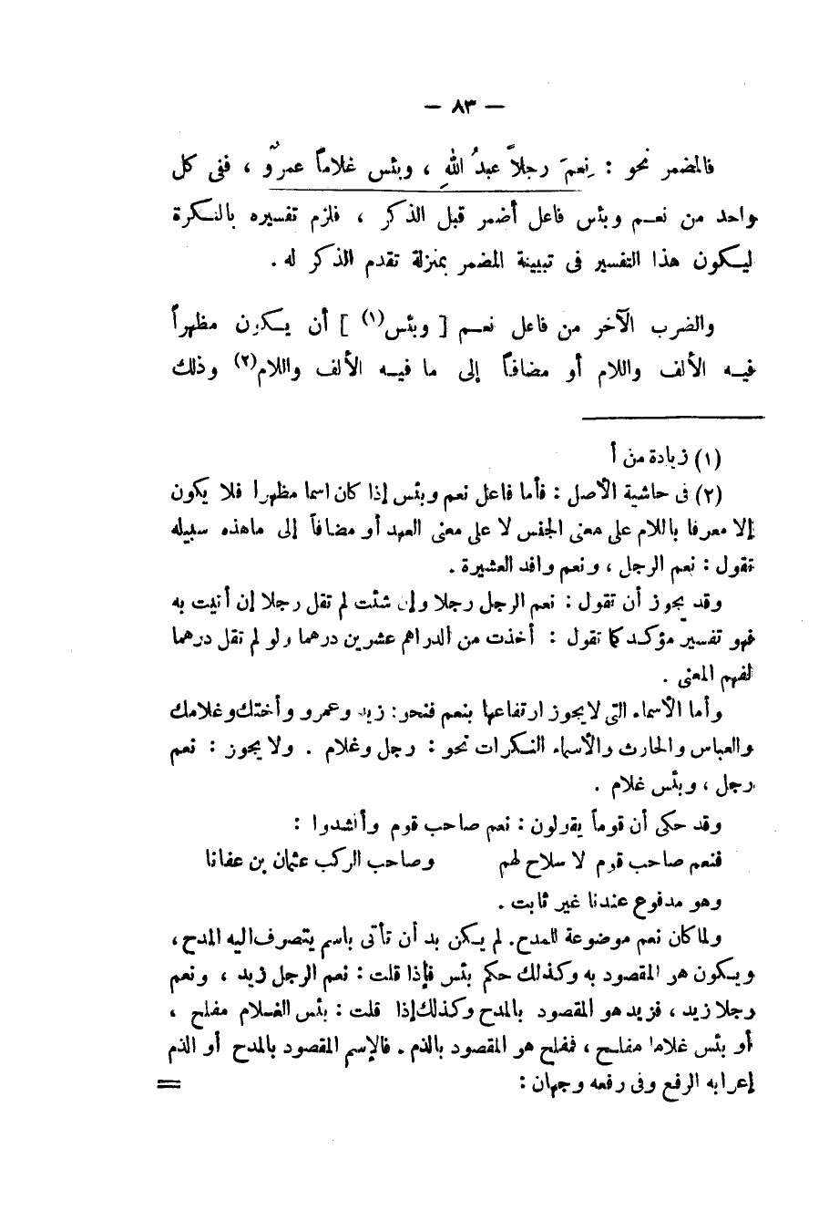 والضرب الآخر من فاعل نعم [وبئس] أن يكون مظهراً فيه الألف واللام أو مضافا إلى ما فيه الألف واللام وذلك