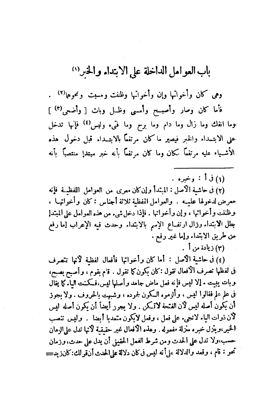 فأما كان وصار وأصبح وأمسى وظل وبات [وأضحى] وما انفك وما زال وما دام وما برح وما فتئ وليس فإنها تدخل على الابتداء والخبر فيصير ما كان مرتفعا بالابتداء قبل دخول هذه الأشياء عليه مرتفعا مكان وما كان مرتفعا بأنه خبر مبتدأ منتصباً بأنه