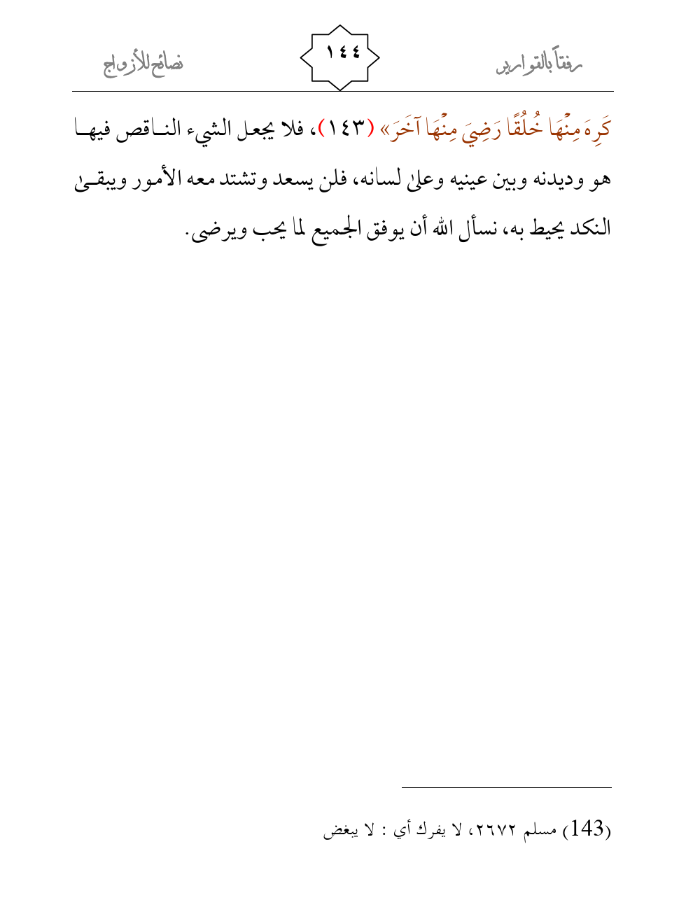 (¬1) مسلم 2672، لا يفرك أي: لا يبغض