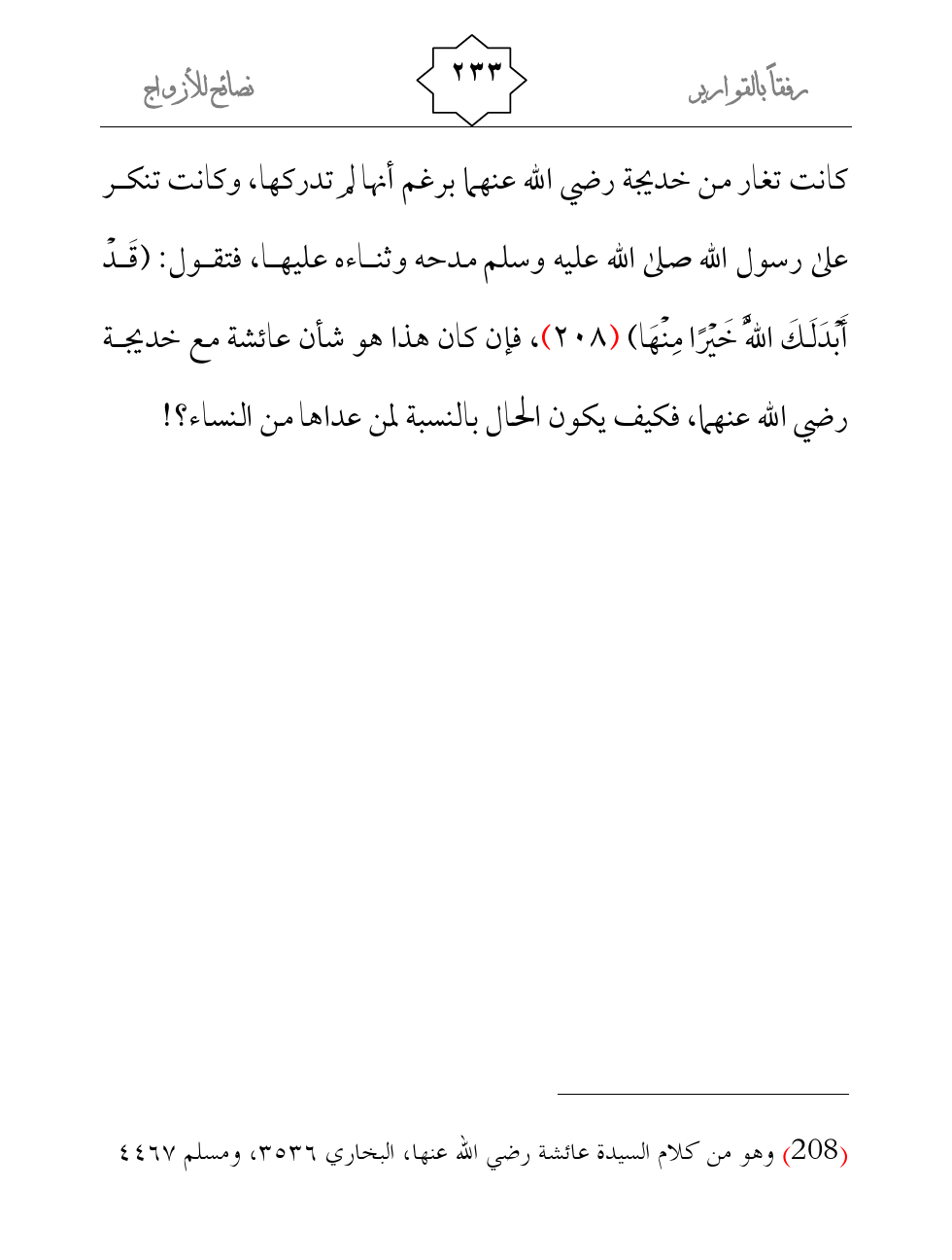(¬1) وهو من كلام السيدة عائشة رضي الله عنها، البخاري 3536، ومسلم 4467