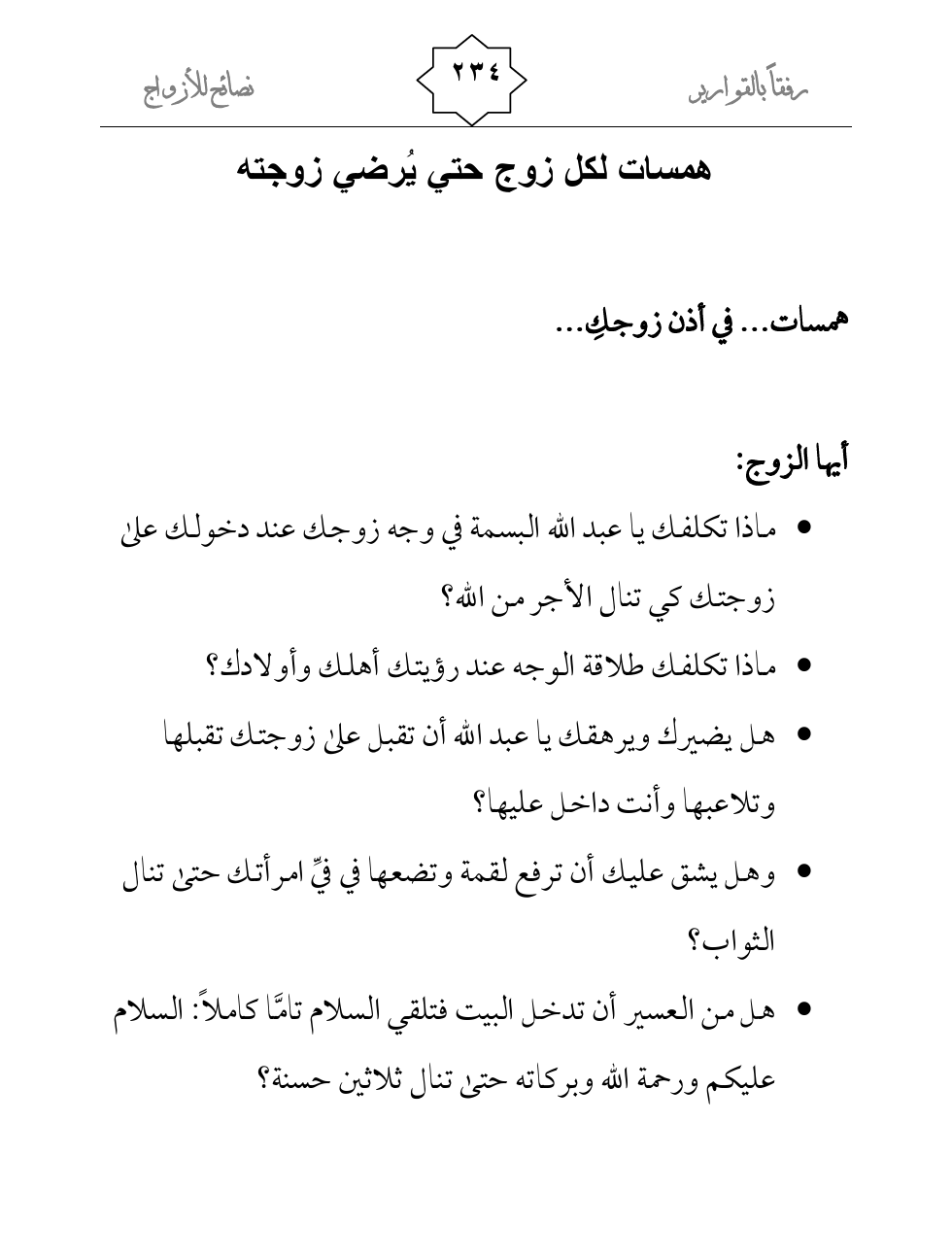 - ماذا تكلفك يا عبد الله البسمة في وجه زوجك عند دخولك على زوجتك كي تنال الأجر من الله؟