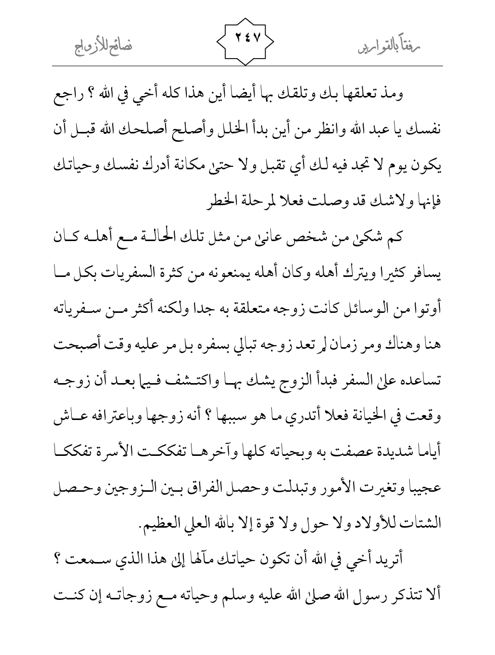 أتريد أخي في الله أن تكون حياتك مآلها إلى هذا الذي سمعت؟ ألا تتذكر رسول الله صلى الله عليه وسلم وحياته مع زوجاته إن كنت