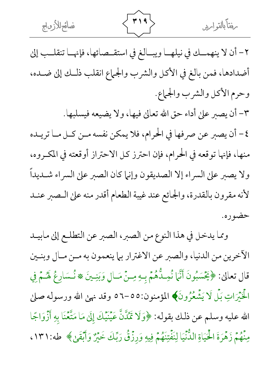 3- أن يصبر على أداء حق الله تعالى فيها، ولا يضيعه فيسلبها.