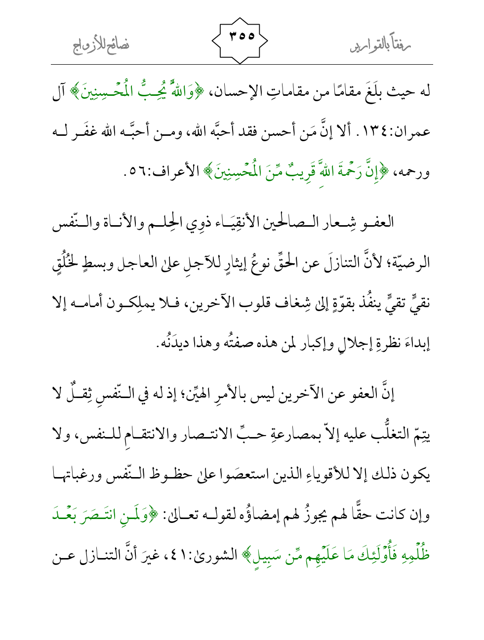له حيث بلَغَ مقامًا من مقاماتِ الإحسان، {وَاللَّهُ يُحِبُّ المُحْسِنِينَ} آل عمران:134. ألا إنَّ مَن أحسن فقد أحبَّه الله، ومن أحبَّه الله غفَر له ورحمه، {إِنَّ رَحْمةَ اللَّهِ قَرِيبٌ مِّنَ المُحْسِنِينَ} الأعراف:56.