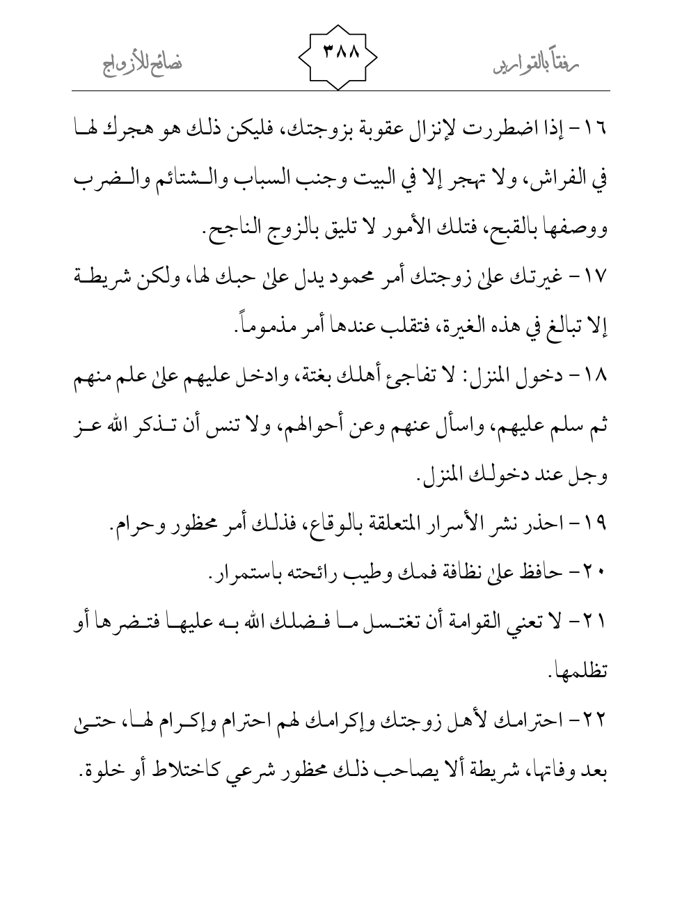 19- احذر نشر الأسرار المتعلقة بالوقاع، فذلك أمر محظور وحرام.
