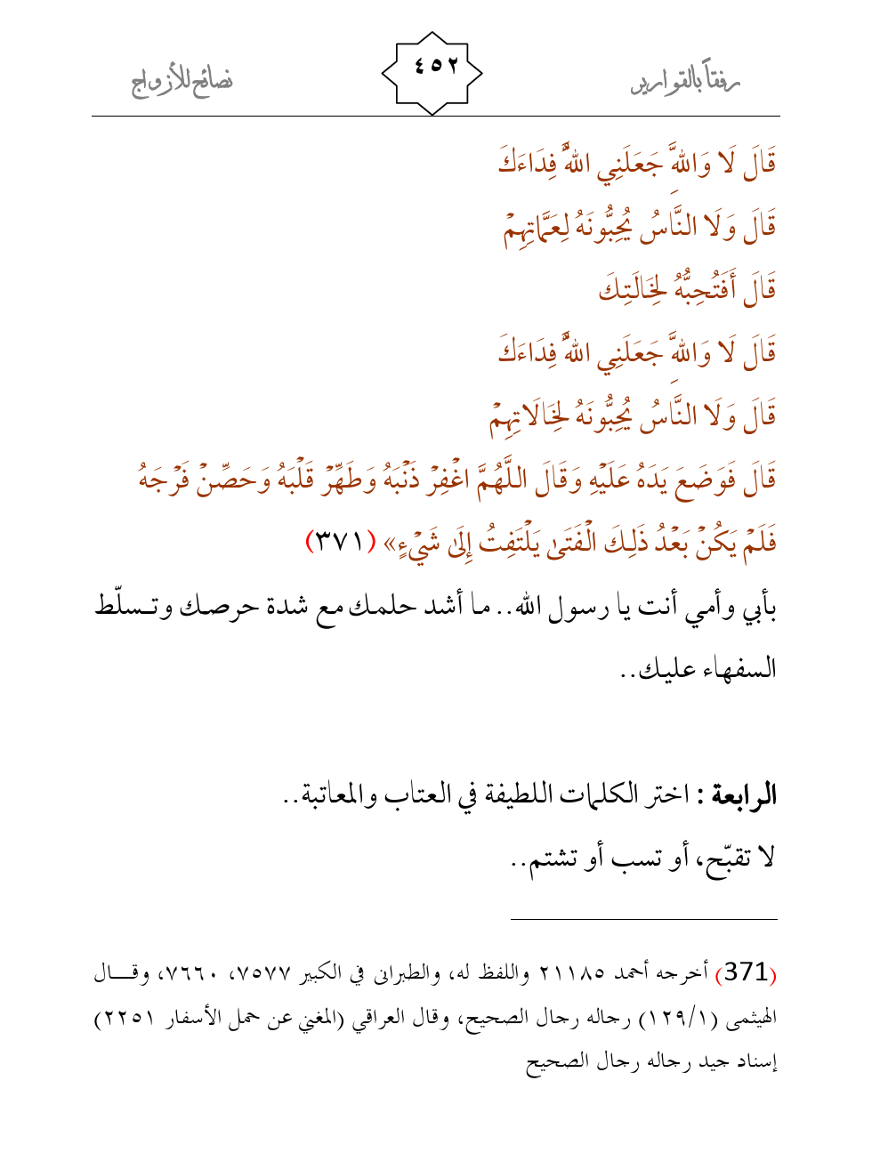 الرابعة: اختر الكلمات اللطيفة في العتاب والمعاتبة..