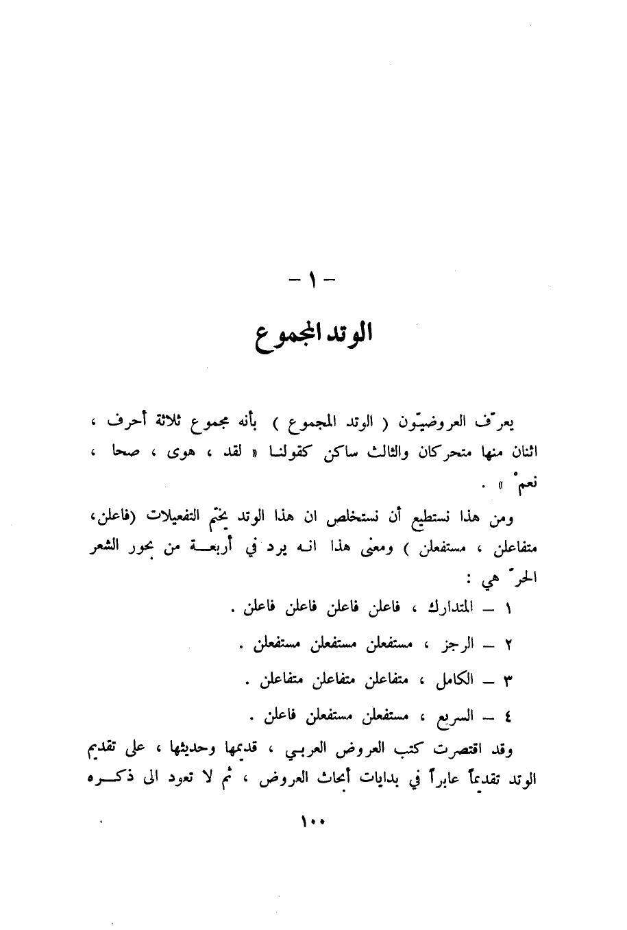 وقد اقتصرت كتب العروض العربي، قديمها وحديثها، على تقديم الوتد تقديمًا عابرًا في بدايات أبحاث العروض، ثم لا تعود إلى ذكره.