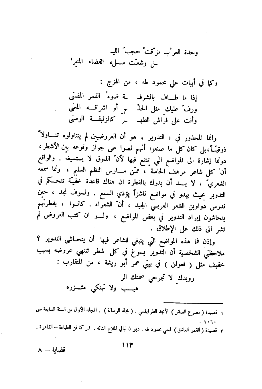 2 قصيدة "القمر العاشق" لعلي محمود طه. ديوان ليالي الملاح التائه. شركة فن الطباعة - القاهرة.