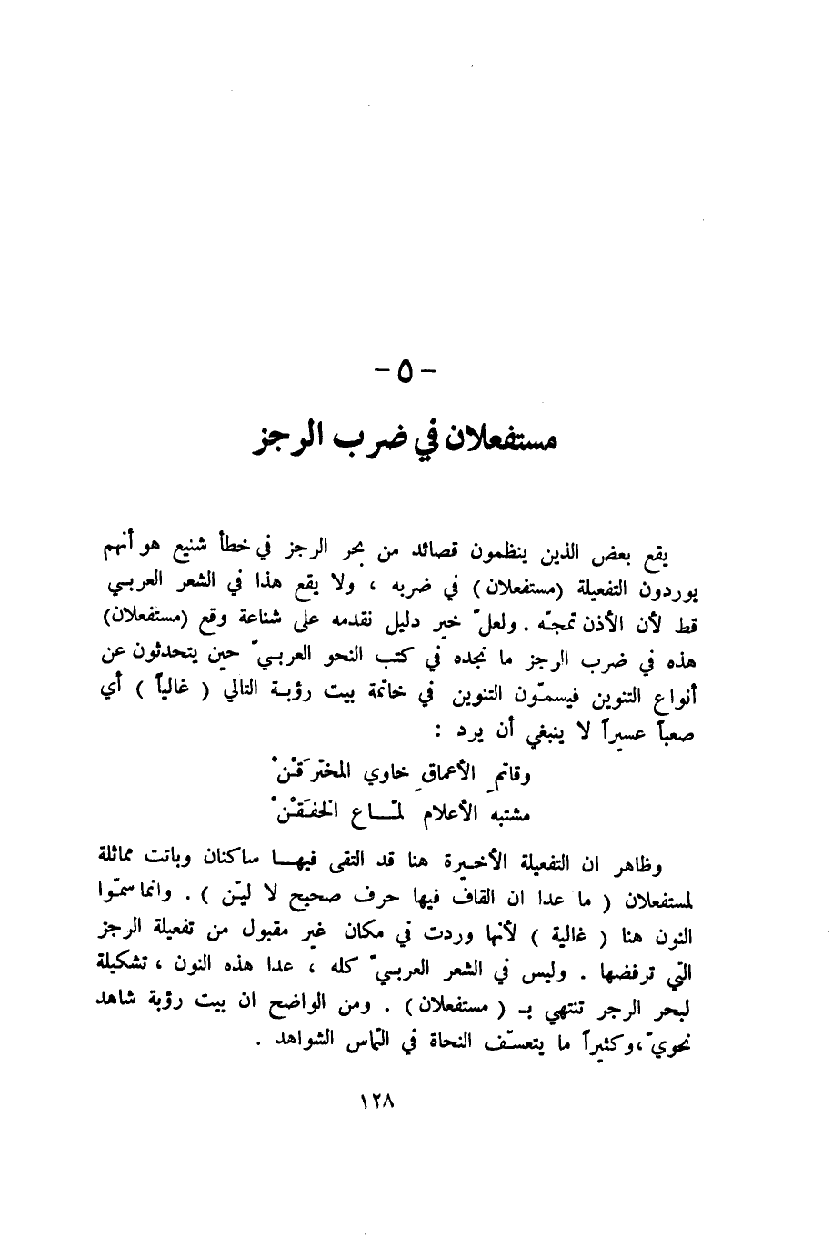 وظاهر أن التفعيلة الأخيرة هنا قد التقى فيها ساكنان وباتت مماثلة لمستفعلان "ما عدا أن القاف فيها حرف صيح لا لين". وإنما سموا النون هنا "غالية" لأنها وردت في مكان غير مقبول من تفعيلة الرجز التي ترفضها. وليس في الشعر العربي كله، عدا هذه النون، تشكيلة لبحر الرجز تنتهي بـ "مستفعلان". ومن الواضح أن بيت رؤبة شاهد نحوي، وكثيرًا ما يتعسف النحاة في التماس الشواهد.