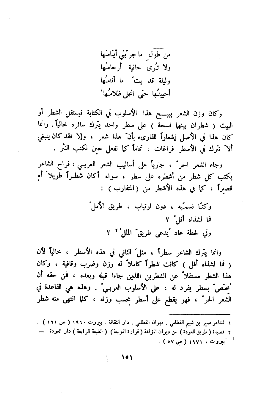 1 للشاعر عمير بن شييم القطامي. ديوان القطامي. دار الثقافة، بيروت 1960 "ص161".