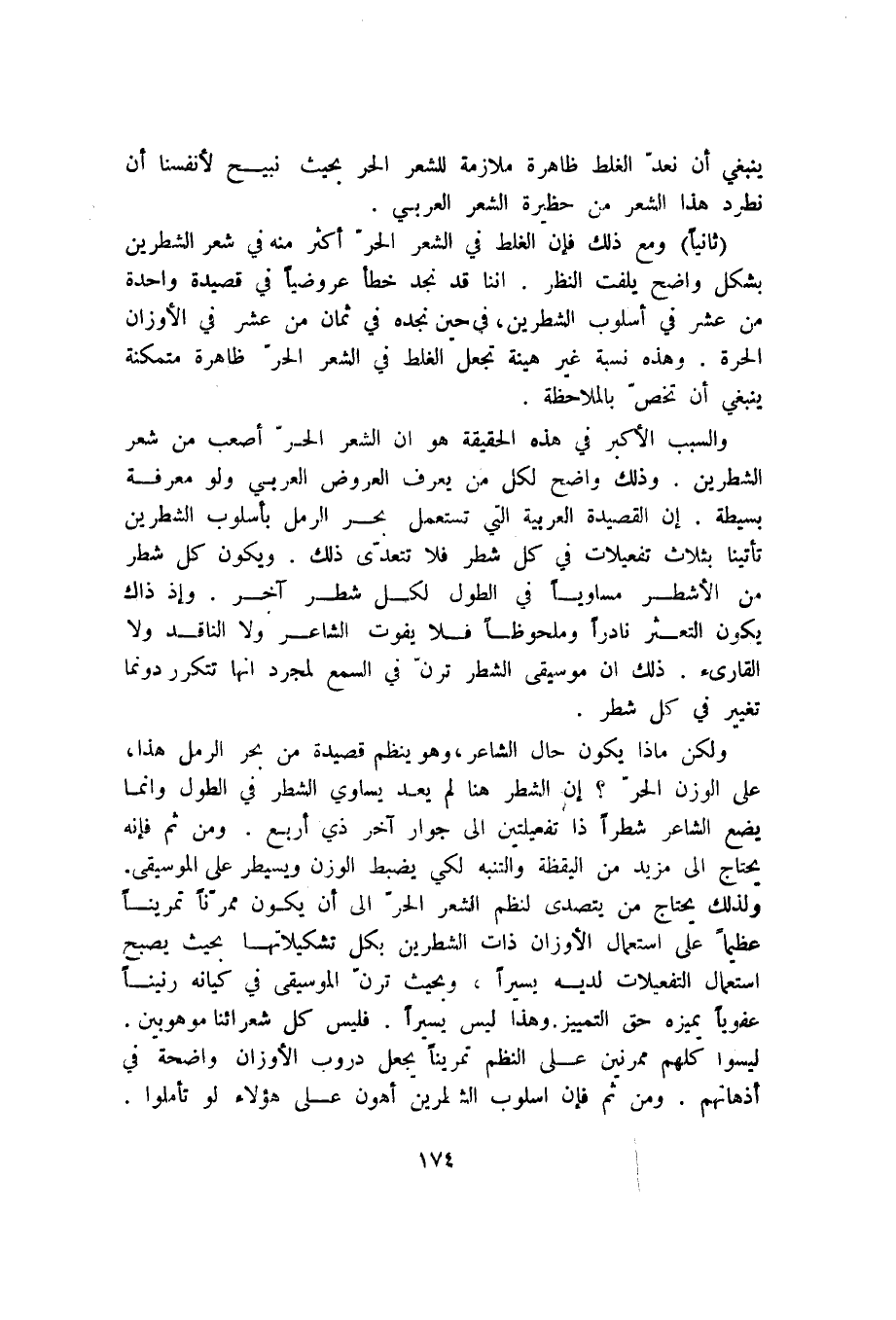 ينبغي أن نعد الغلط ظاهرة ملازمة للشعر الحر حيث نبيح لأنفسنا أن نطرد هذا الشعر من حظيرة الشعر العربي.