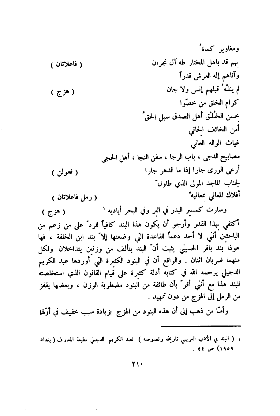 1 "البند في الأدب العربي تاريخه ونصوصه" لعبد الكريم الدجيلي مطبعة المعارف "بغداد 1959" ص44.