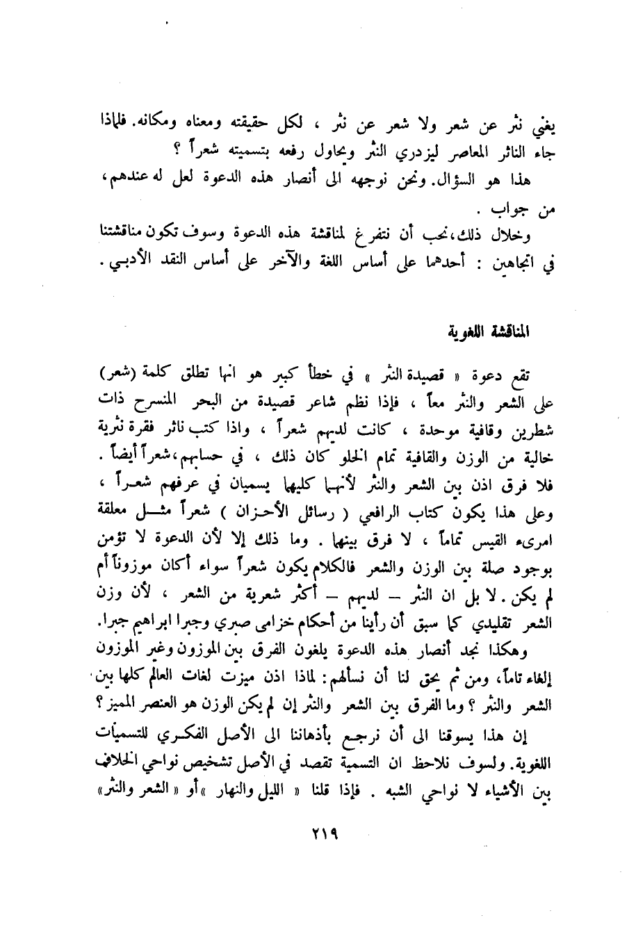وخلال ذلك، نحب أن نتفرغ لمناقشة هذه الدعوة وسوف تكون مناقشتنا في اتجاهين: أحدهما على أساس اللغة والآخر على أساس النقد الأدبي.