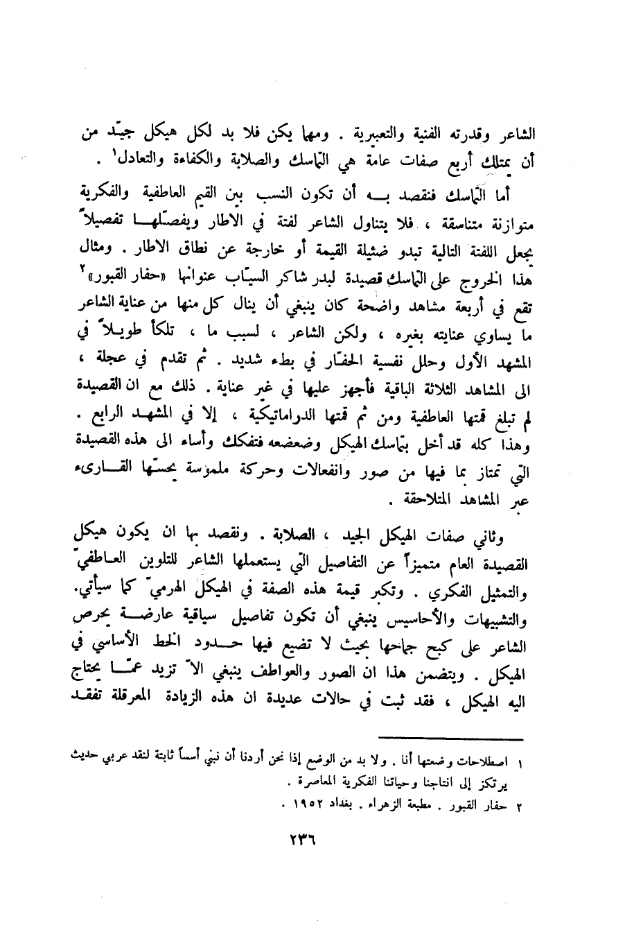 الشاعر وقدرته الفنية والتعبيرية. ومهما يكن فلا بد لكل هيكل جيد من أن يمتلك أربع صفات عامة هي التماسك والصلابة والكفاءة والتعادل1.
