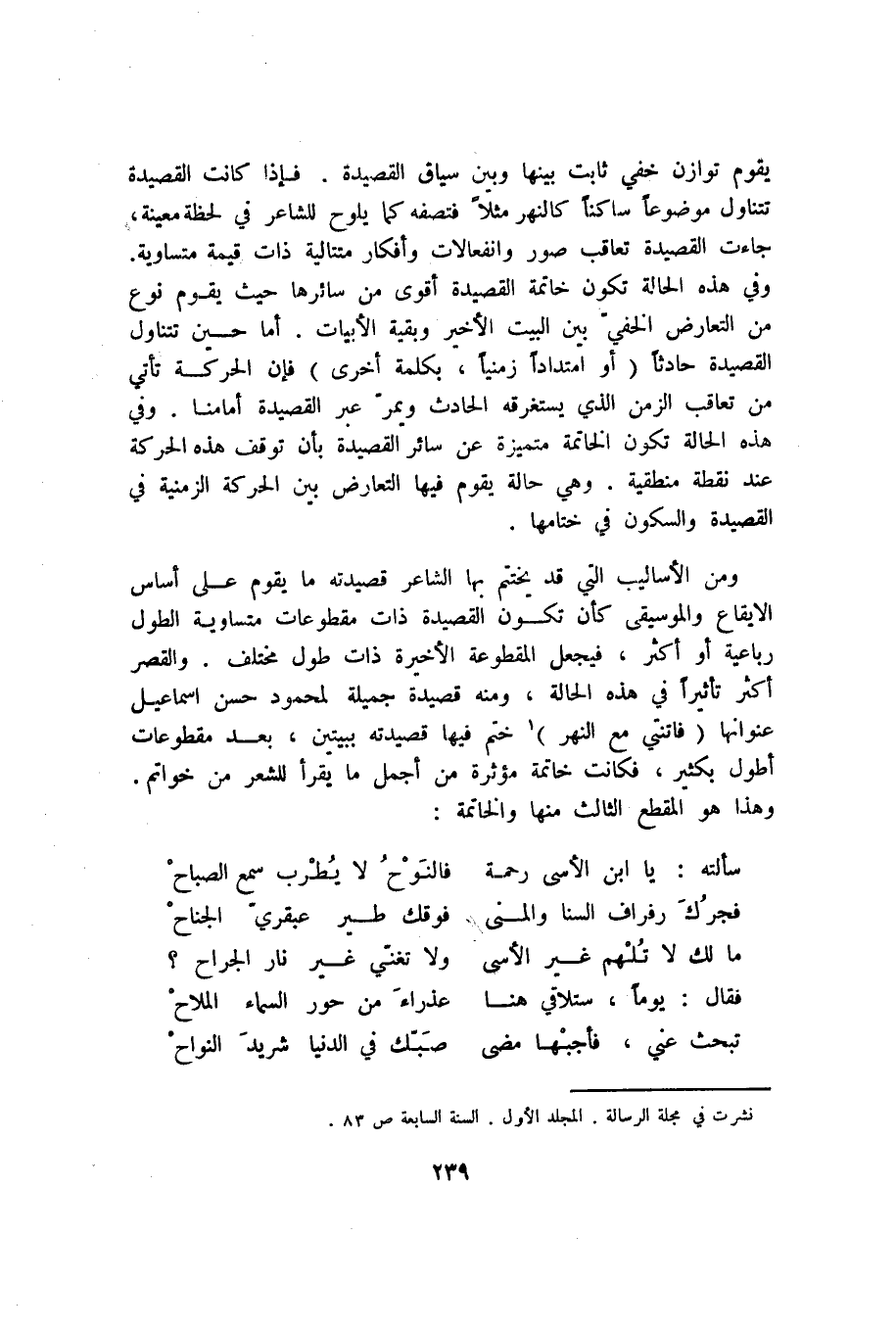 1 نشرت في مجلة الرسالة. المجلد الأول. السنة السابعة ص83.