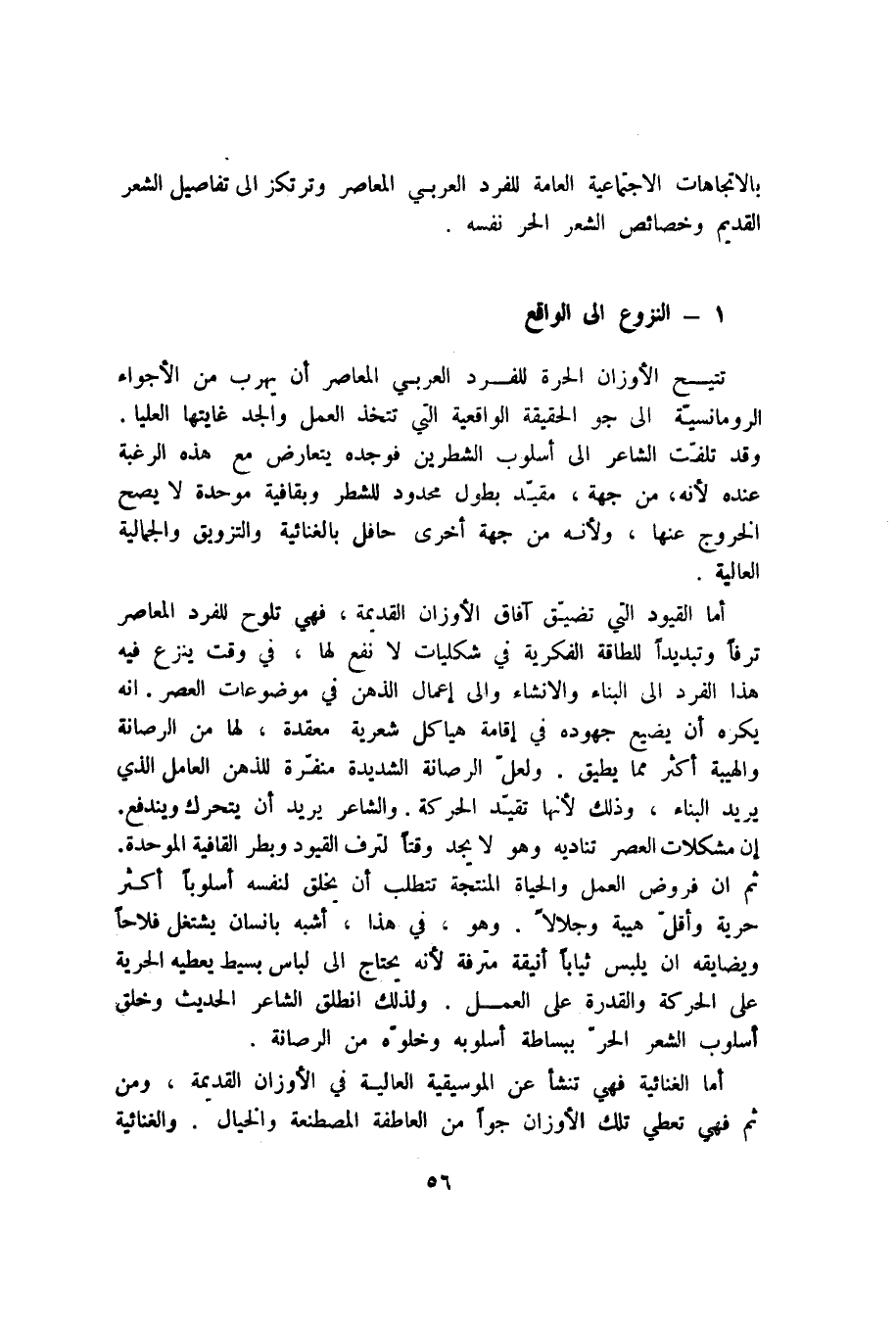 بالاتجاهات الاجتماعية العامة للفرد العربي المعاصر وترتكز إلى تفاصيل الشعر القديم وخصائص الشعر الحر نفسه.
