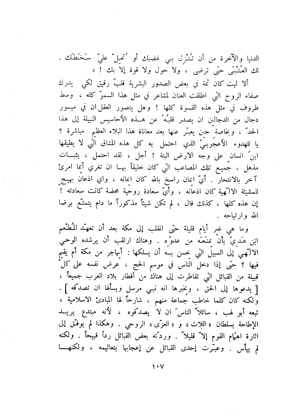 وما هي غير أيام قليلة حتى انقلب إلى مكة بعد أن تعهّد المطعم ابن عديّ بأن يمنعه من عدوّه. وهناك ارتقب أن يرشده الوحي الالهي إلى السبيل التي يحسن به أن يسلكها: أيهاجر من مكة أم يقيم فيها؟ حتى إذا دخل الناس في موسم الحج، عرض نفسه على كلّ قبيلة من القبائل التي تقاطرت إلى هناك من أقطار بلاد العرب جميعا، [يدعوها إلى الحق، ويخبرها انه نبي مرسل ويسألها ان تصدّقه] .