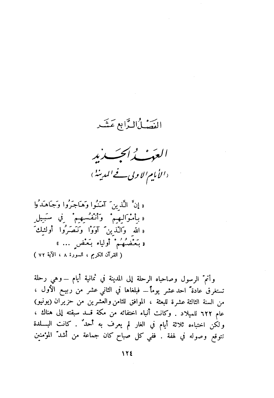الفصل الرّابع عشر العهد الجديد (الأيام الاولى في المدينة)