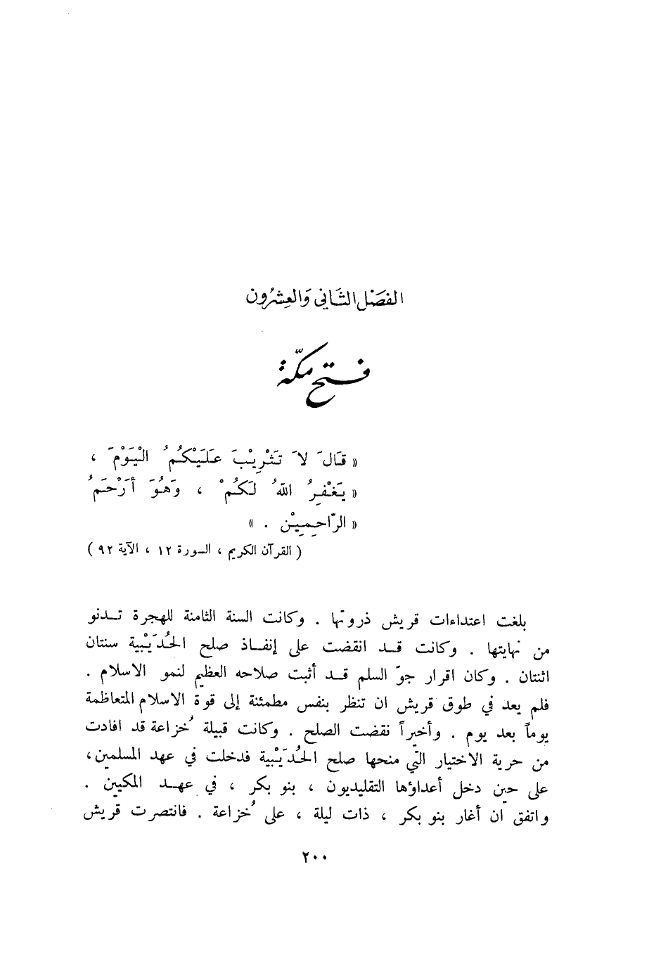 واتفق ان أغار بنو بكر، ذات ليلة، على خزاعة. فانتصرت قريش