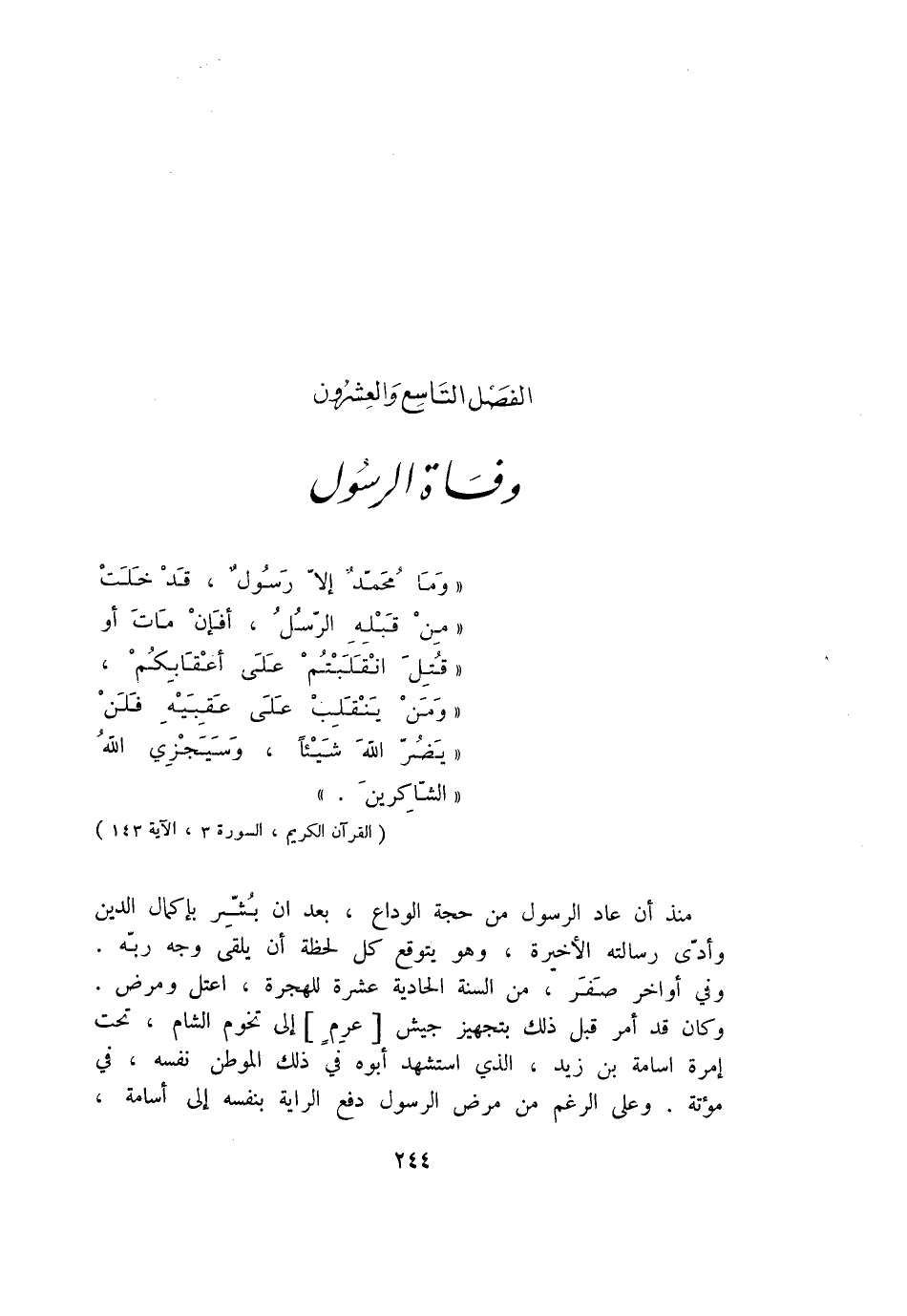 الفصل التاسع والعشرون وفاة الرسول