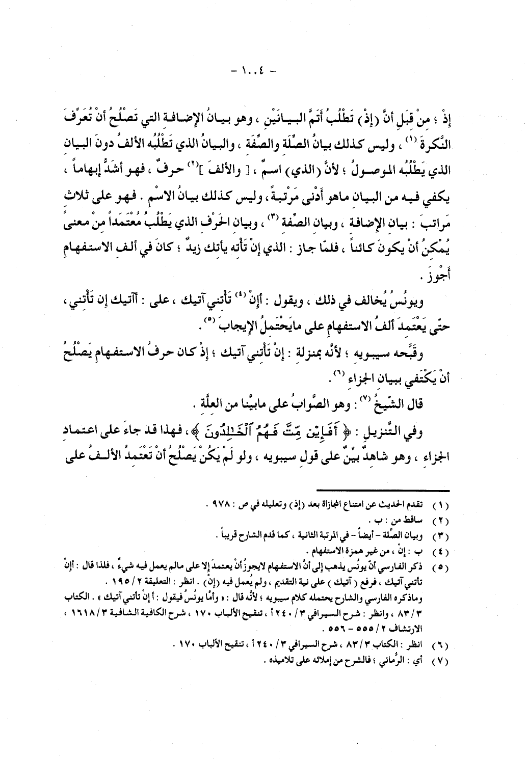 ويونس يخالف في ذلك, ويقول: أإن تأتني آتيك, على: أآتيك إن تأتني, حتى يعتمد ألف الاستفهام على ما يحتمل الإيجاب.