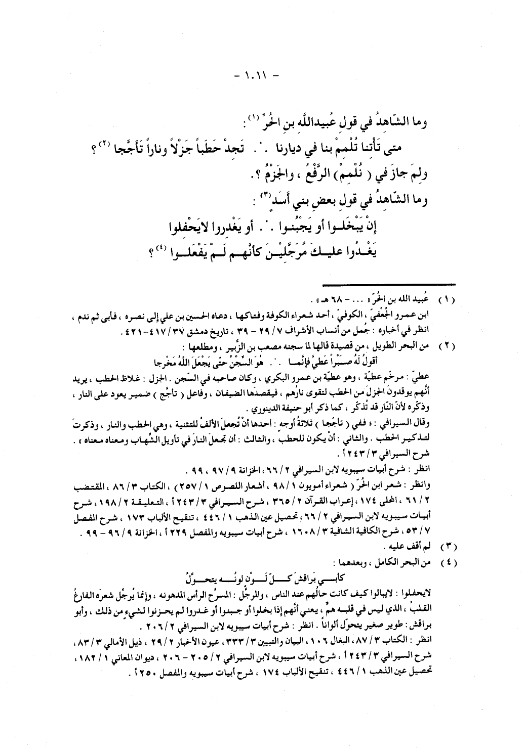وما الشاهد في قول عبيد الله بن الحر: